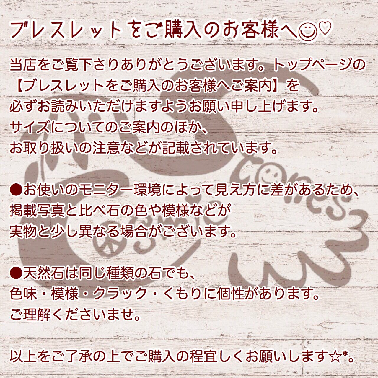☆商品一覧トップの『ブレスレットをご購入のお客様へ』をご一読の上ご購入下さいませ。サイズやお取り扱いについて記載しております。